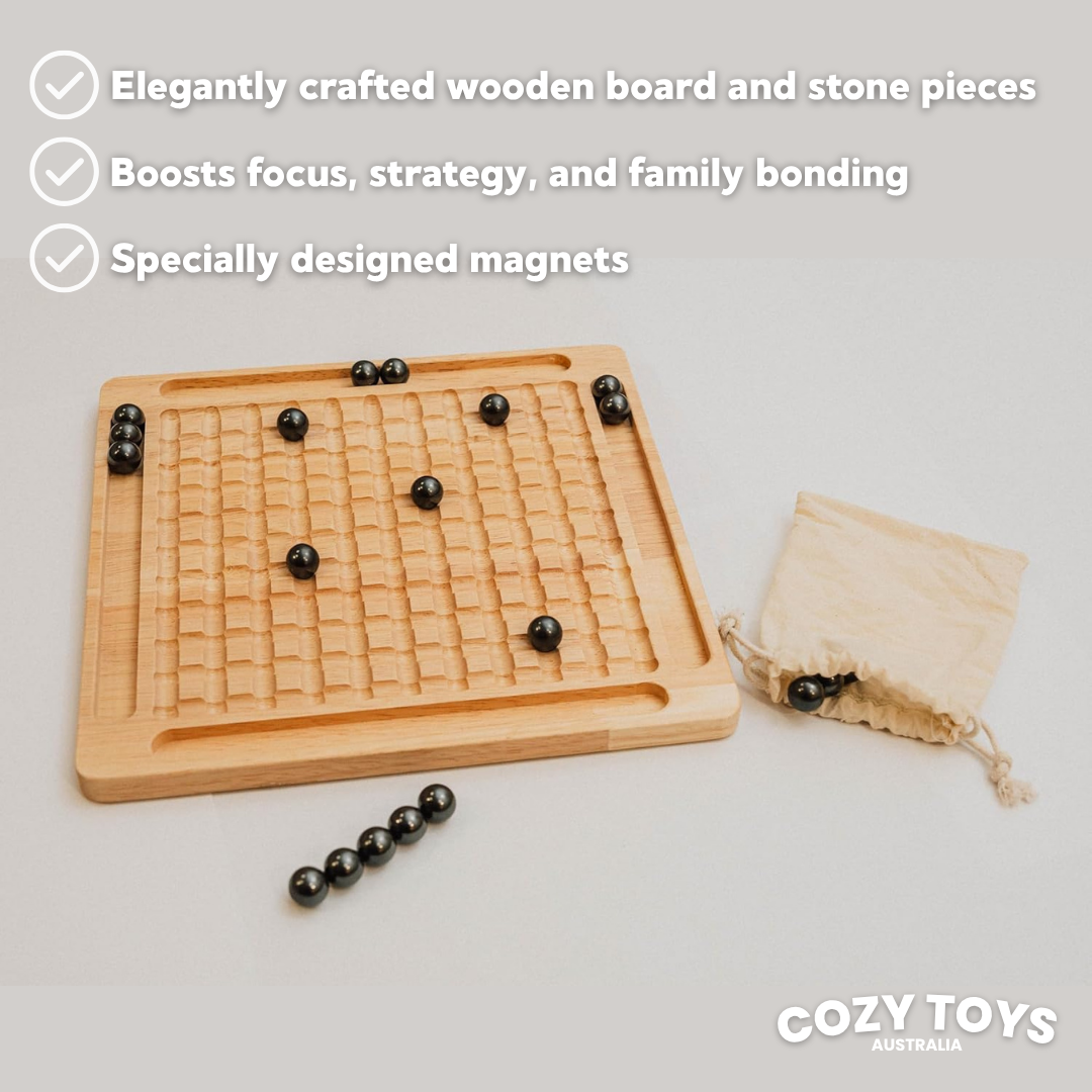 Our Deluxe Edition features a handcrafted wooden board and polished magnetic pieces. Each stone piece is fitted with a precision-engineered magnet, giving every move a smooth, stable, and satisfying feel.